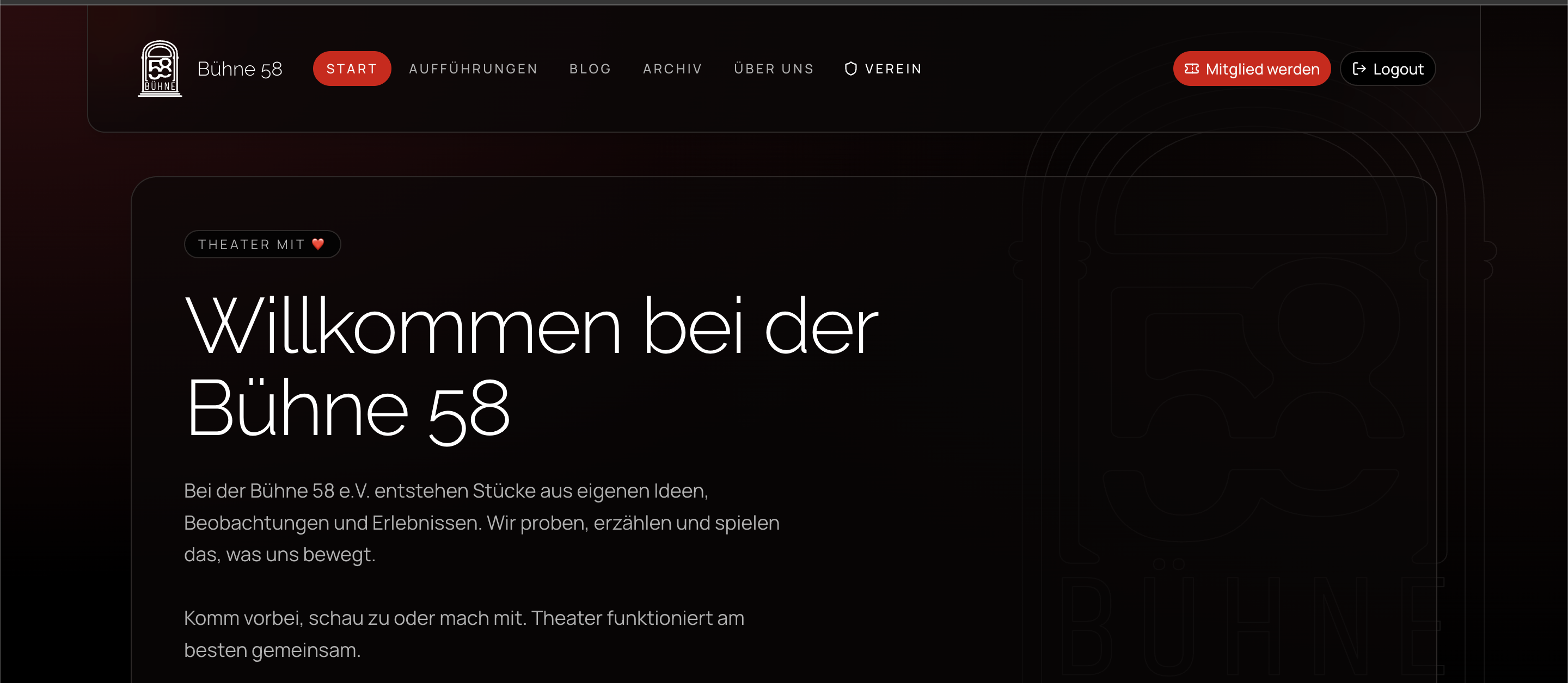 Wir freuen uns sehr, unsere neue Website vorzustellen! Ab sofort können ganz bequem Karten für unsere aktuelle Produktion reserviert werden. Unter " AUFFÜHRUNGEN " werden wir über kommende Aufführungen informieren und im Archiv können Erinnerungen an vergangene Produktionen erweckt werden. Das digitale Angebot ermöglicht einen umfassenden Überblick über das Repertoire und die Aktivitäten des Vereins. Schaut doch gleich vorbei – wir freuen uns auf euren digitalen und natürlich auch echten Besuch im Theater!